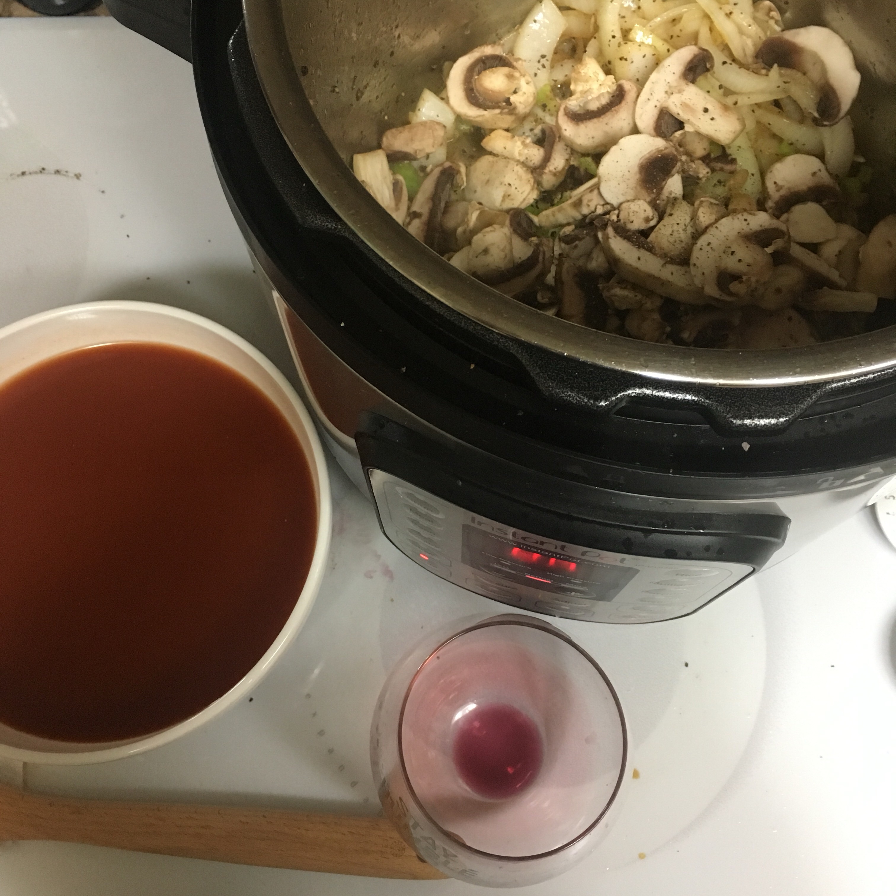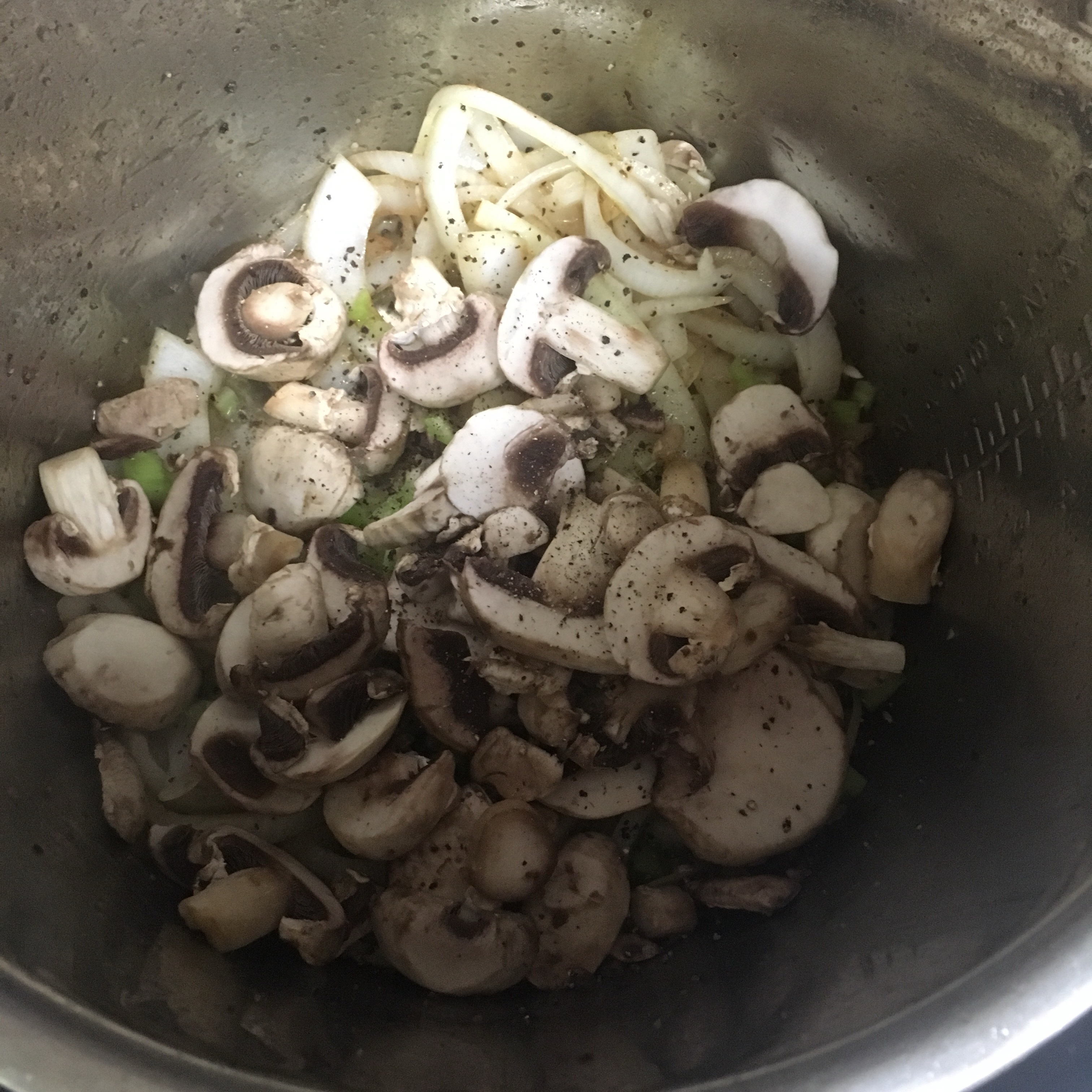 - Add 1 Tbsp olive oil to the pot, then add onion and season with kosher salt and black pepper. Cook until the onions are softened and brown, then add garlic and stir until fragrant. Add chopped celery (totally optional) and mushroom (optional but SO good) and a pinch of kosher salt and black pepper, then cook for 1 to 2 minutes.