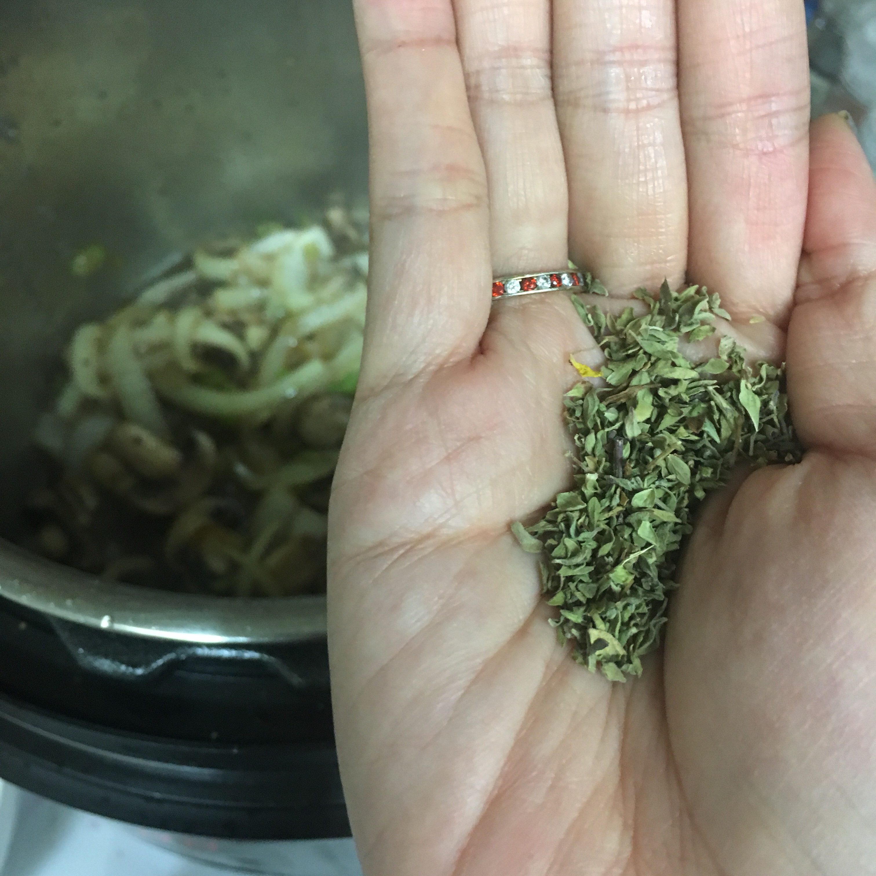 For better flavor from your dried oregano, rub the leaves between your palms crushing the leaves into the pot.