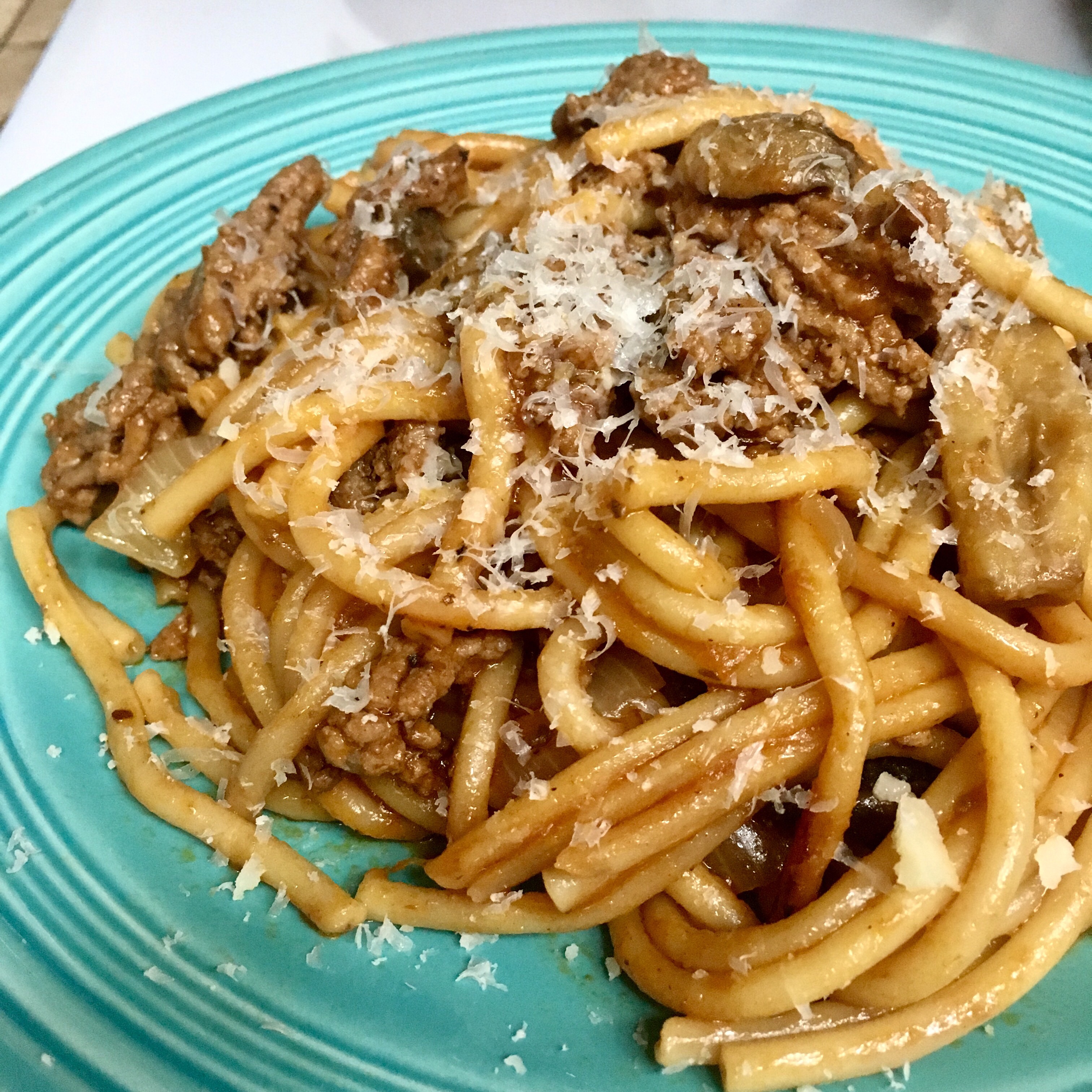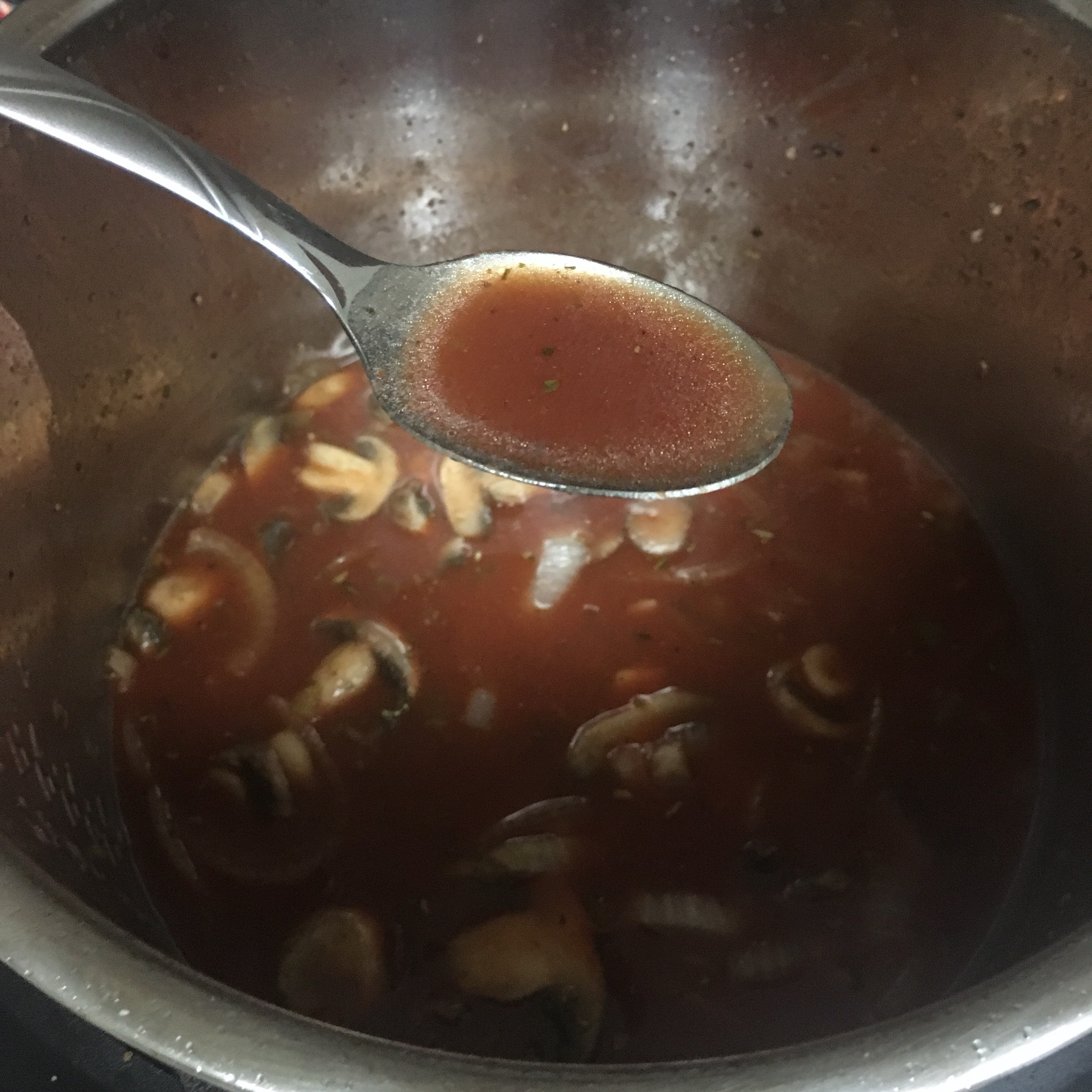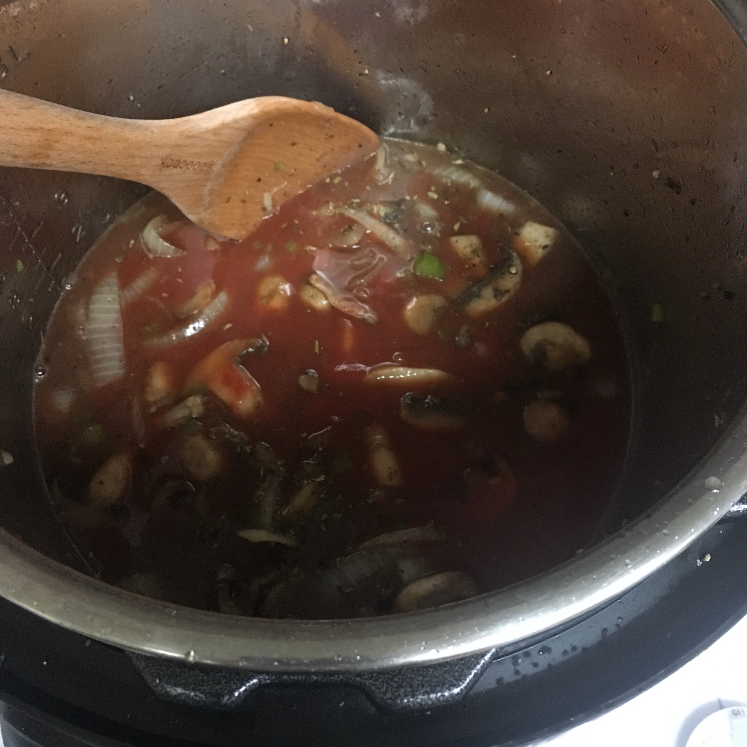 Our first few experiences with the instant pot were shaky, like driving a stick-shift for the first time, but we still made it from point A to point B and got dinner on the table. By the time we set out to make this dish, I had gained a little bit of Instant Pot know how and felt confident making some modifications to simplify both the process and the ingredient list. The original recipe is a one pot recipe, but it is recommended that you cook the spaghetti separately if you wish to serve it al dente. I love my pasta with a firm bite to it, but I wasn’t willing to dirty another pot to wash or take the time to boil water. After all, we’re using the instant pot because it saves time, right? So, we swapped out traditional spaghetti pasta with Bucatini. It is like an extra thick strand of spaghetti with a hollowed center. I adjusted the recipe and technique a bit, to maintain true “one pot” status.