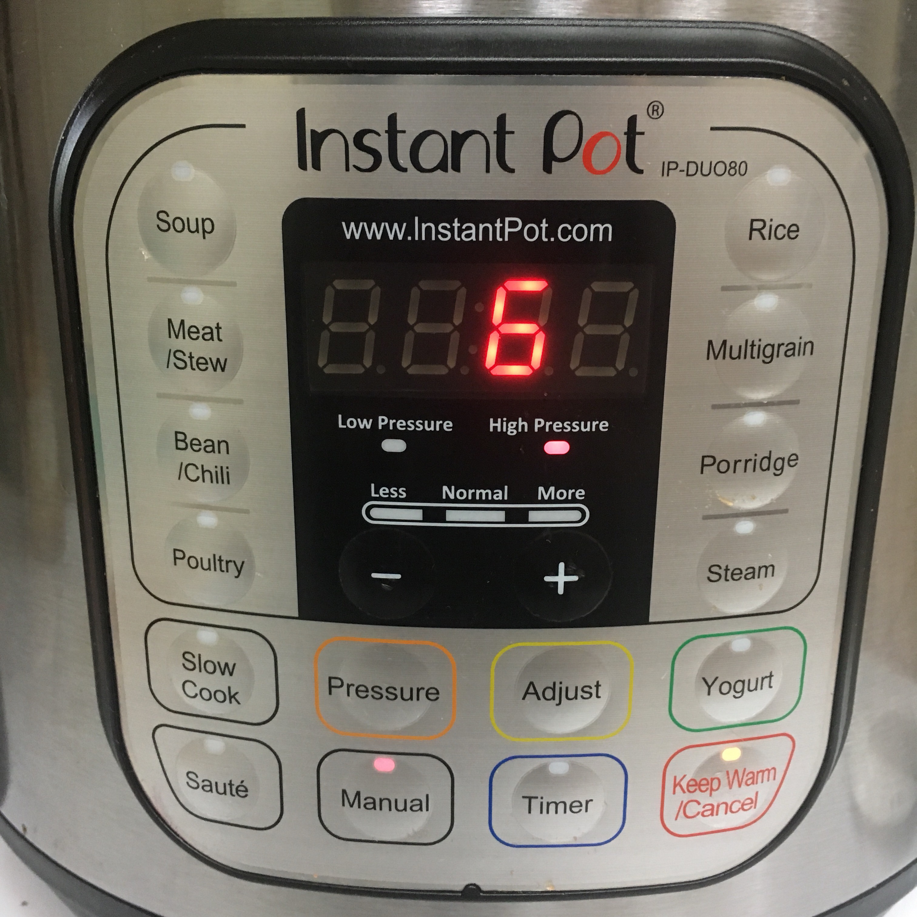 - Cook at high pressure for 6 minutes, then 5 minutes natural release.