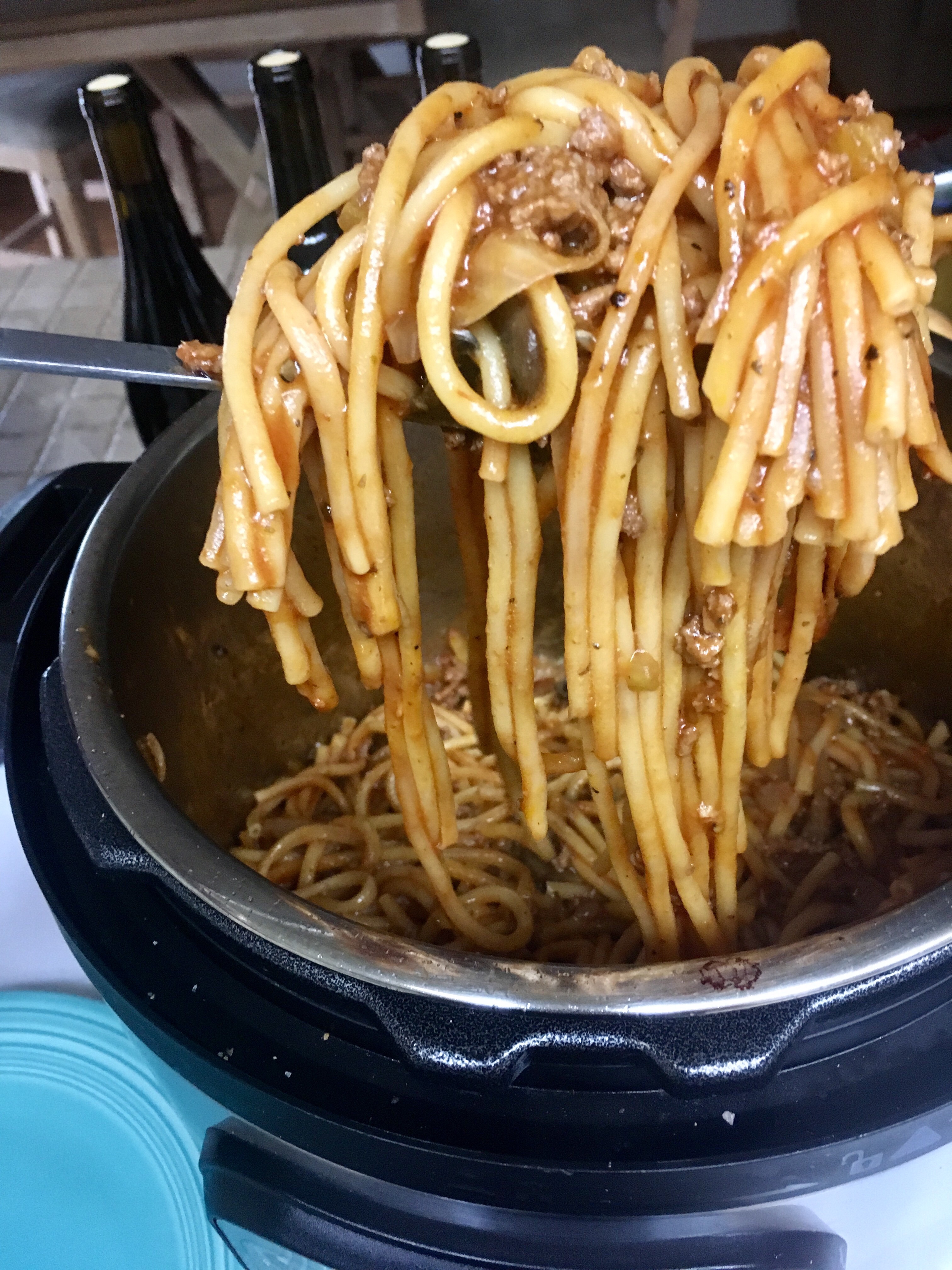 This is my adaptation of the popular Instant Pot Spaghetti Bolognese. My instapot guru Nancy sent me a link to easy Instant Pot recipes for beginners and this was one of them. It looked scrumptious and boasted over 5.5K shares, so I had to give it a go.
