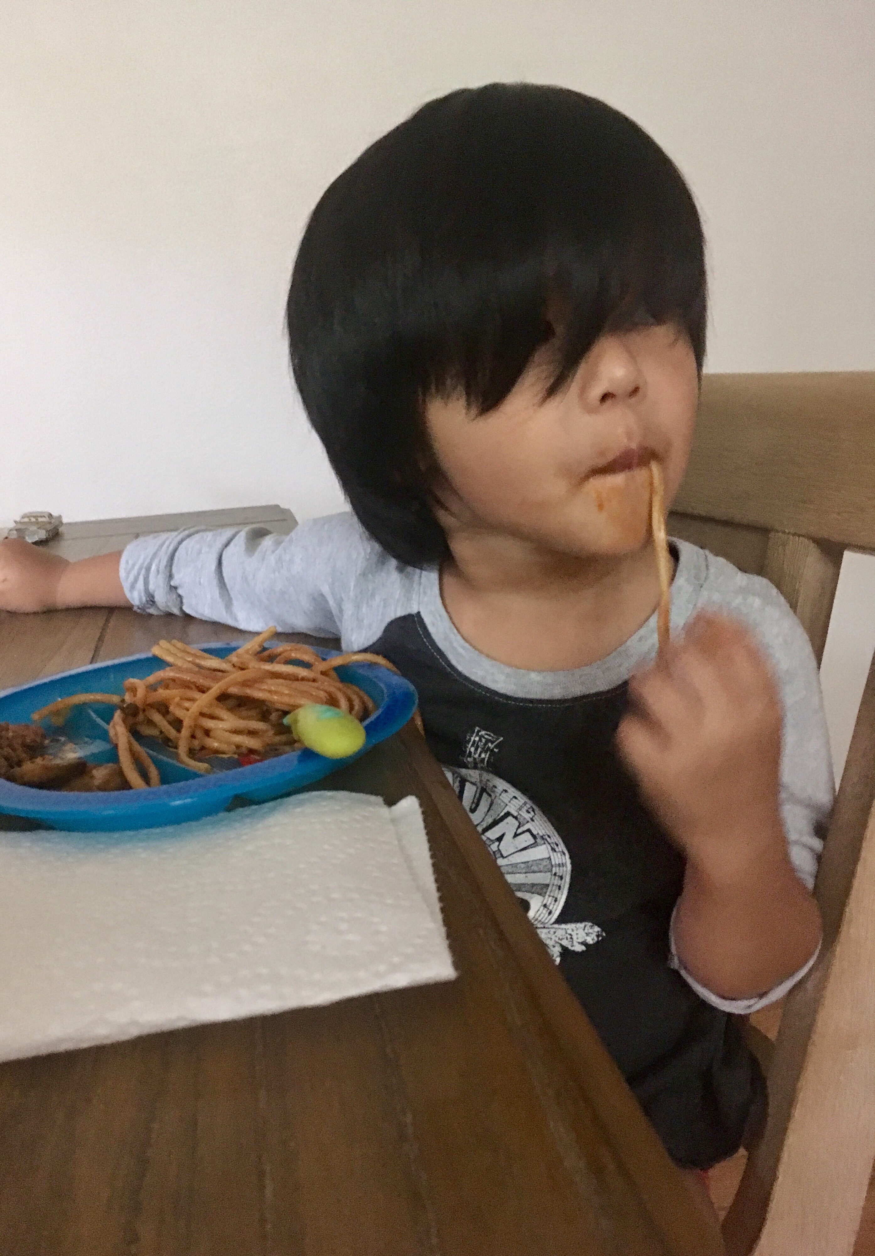 - 1 small onion, rough chopped (slices are great too, but chopped onion flies undetected under the kid-radar)