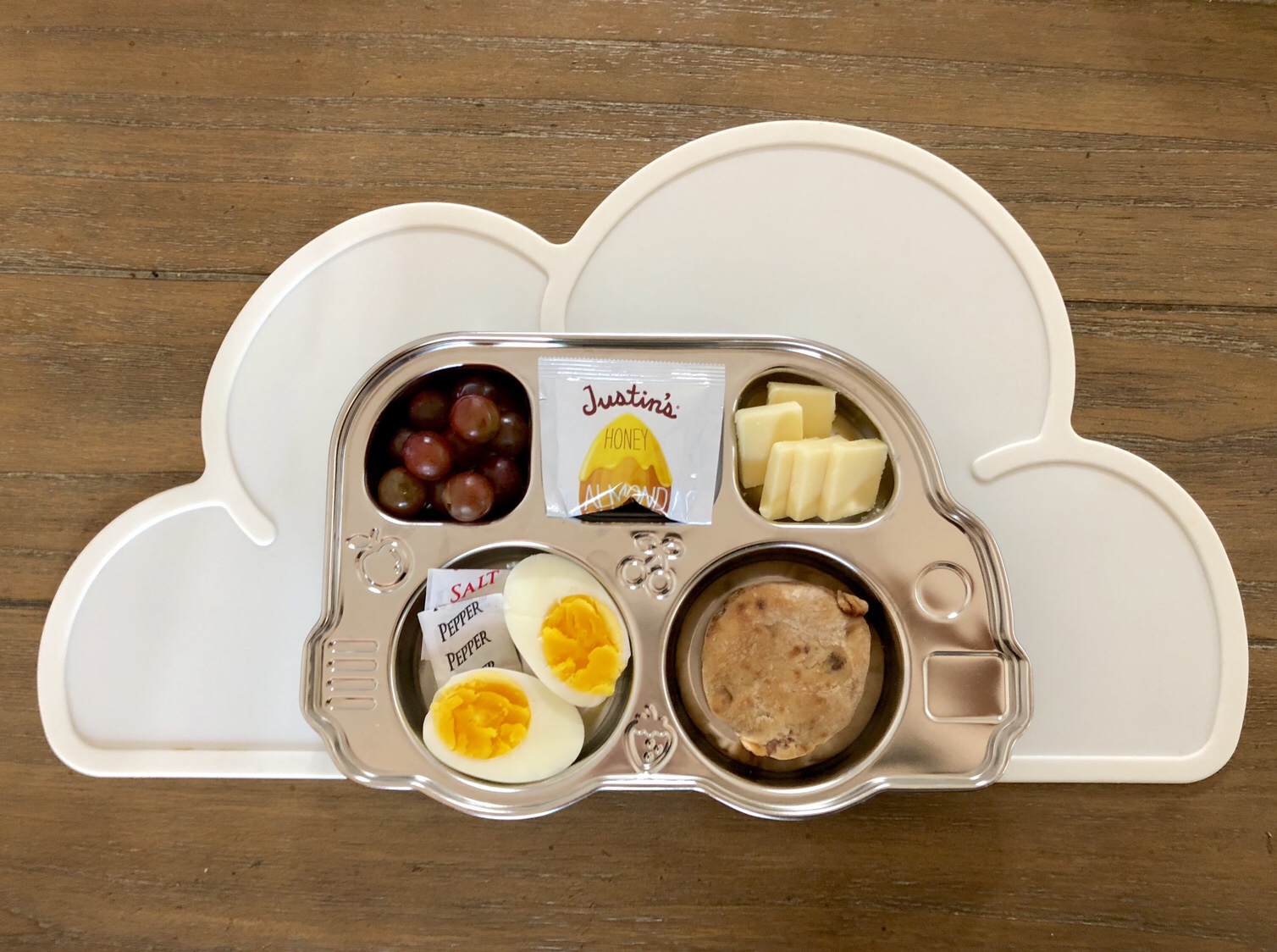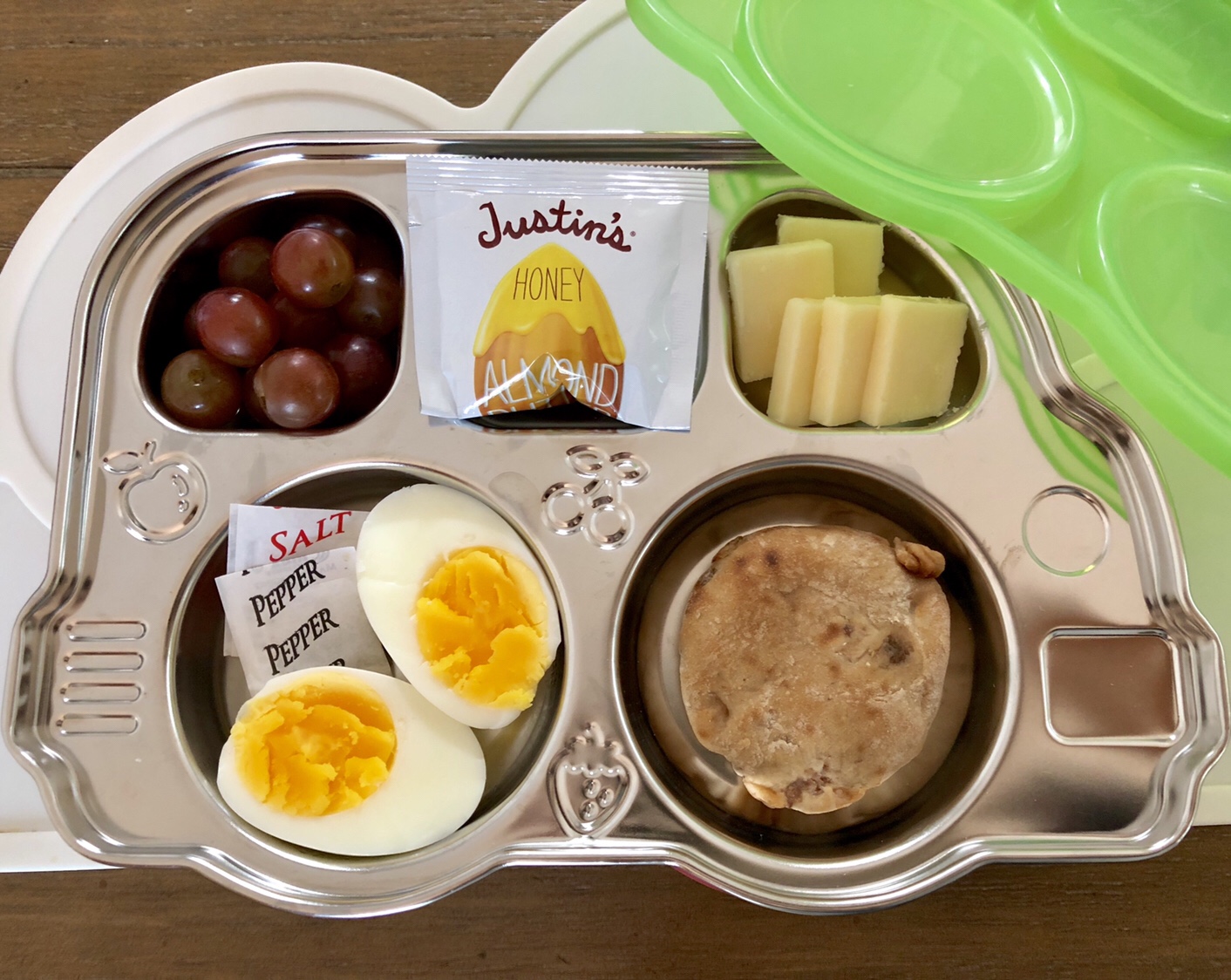 Both of my kids absolutely love the snack boxes from the coffee shop, after all, I had been walking to Starbucks every day with my son since he was born. Now, that I have two kids with growing appetites in tow, and I’m drinking just as much coffee (if not more!) and definitely need ways to stretch our coffee shop budget. This is how I dupe the snack box, perfect for preschool lunch boxes or park play dates! Totally toddler approved! I like to use reusable stainless steel bento trays to minimize the number of containers we would throw away, and the kids like fun food storage.