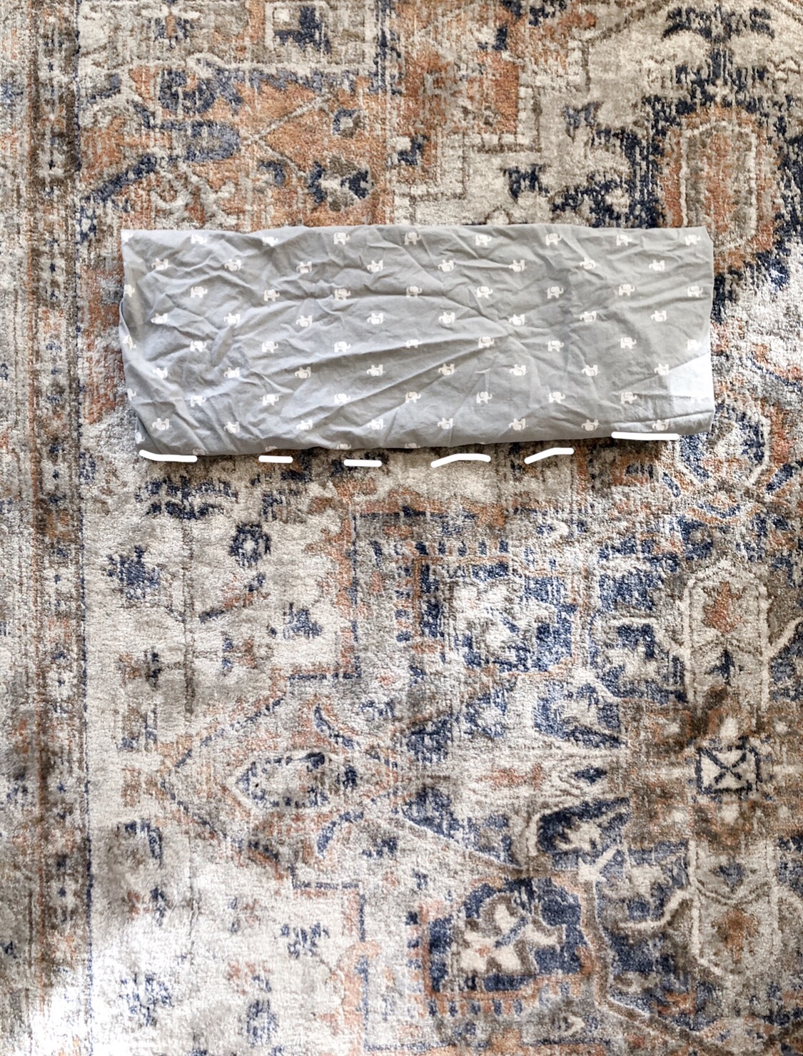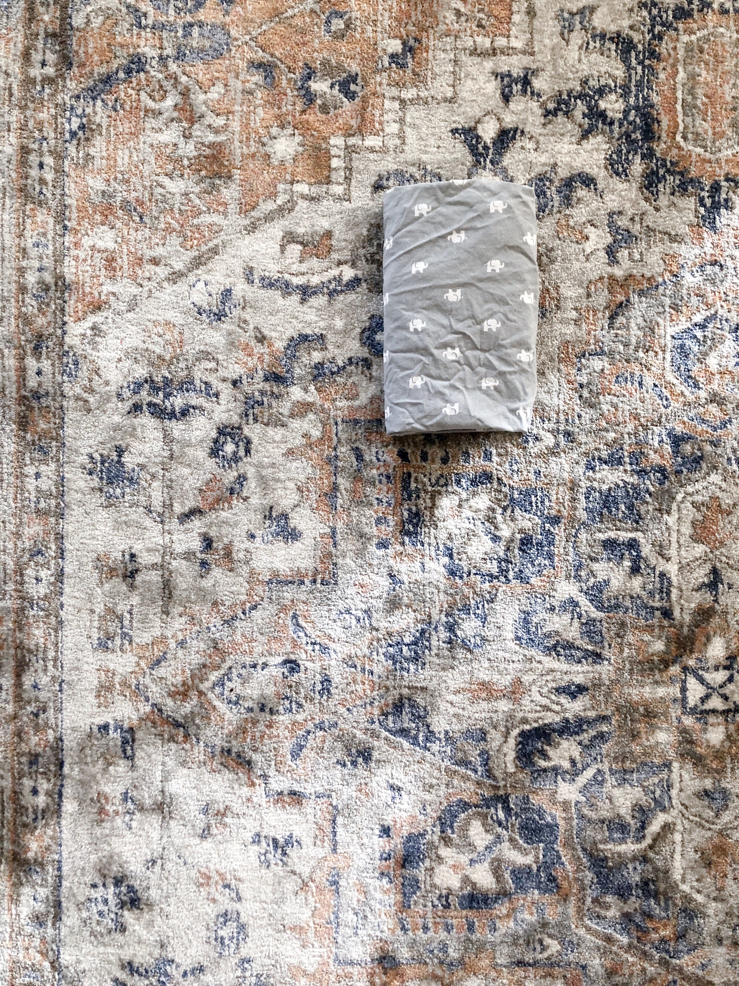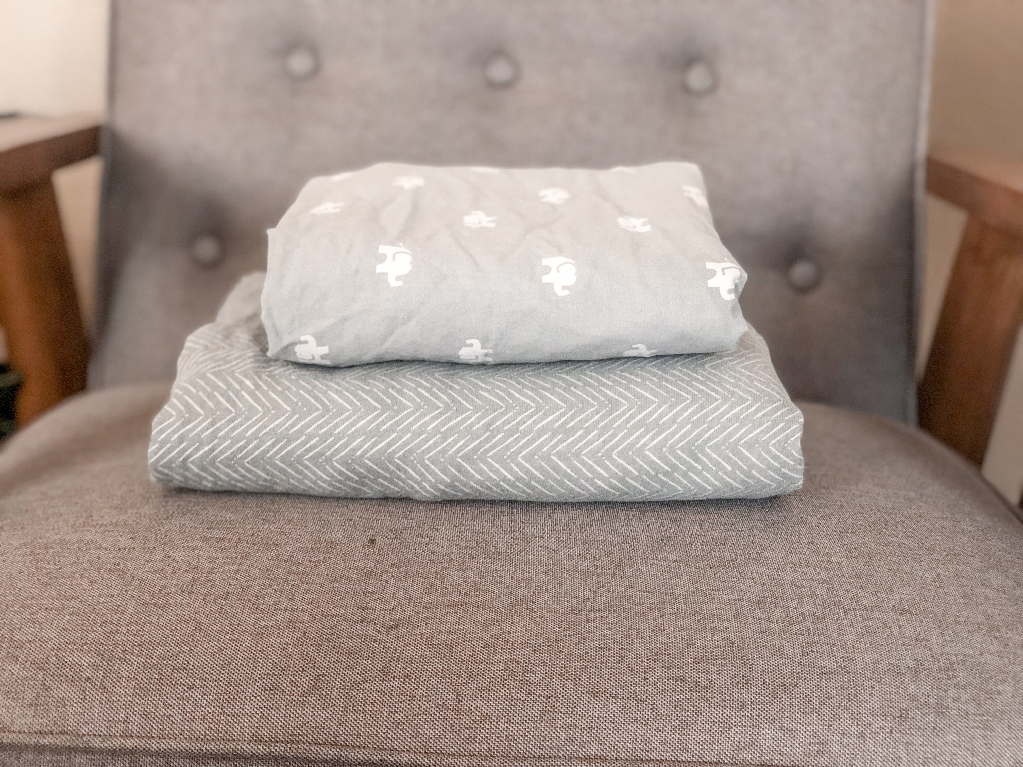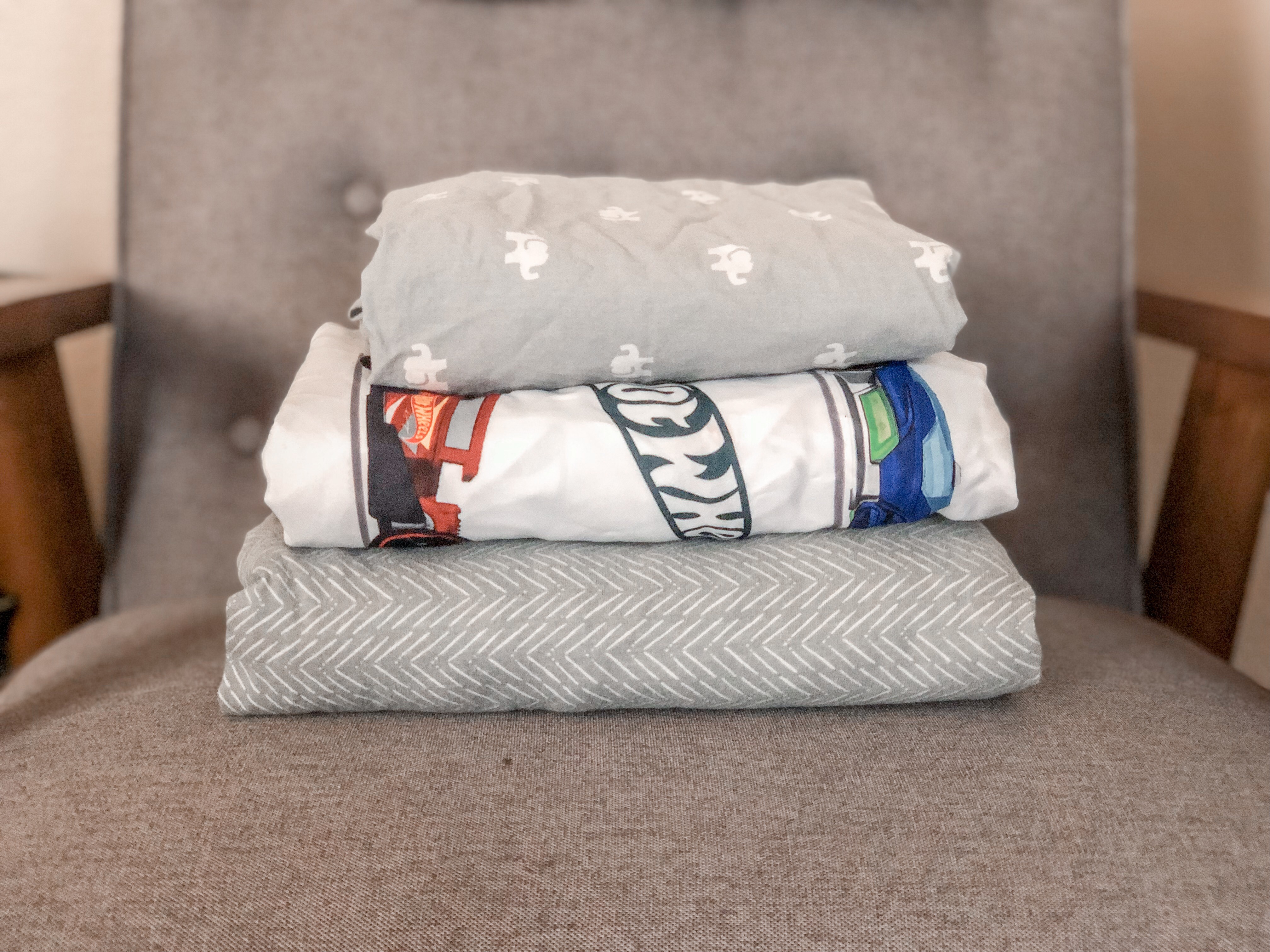 This folding method can be done with ANY size fitted sheet. We chose a crib sheet for ease of taking full length photos, but you can see how I used the same method to fold full-size bed sheets!